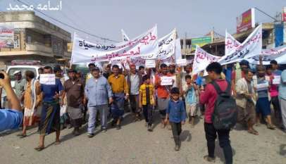 أبين : متظاهرون لودر يطالبون بفتح عقبة ثرة