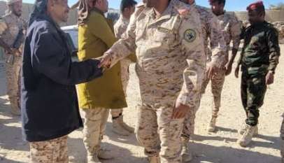 رئيس عمليات لواء حضرموت يقوم بزيارة عيدية للمواقع العسكرية الخارجية