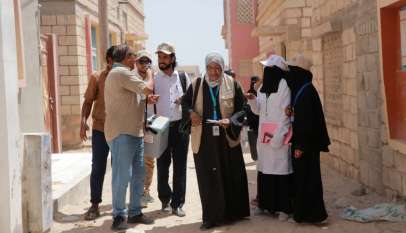 وفد من وزارة الصحة العامة والسكان ومنظمة اليونيسيف يطلعون على الفرق الميدانية ونتائج حملة التحصين ضد شلل الأطفال بمديرية الشحر