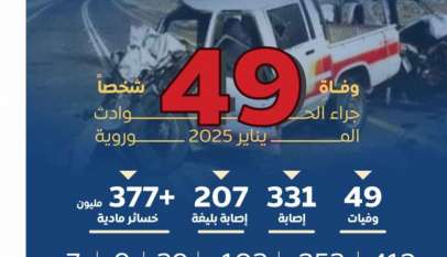 حوادث السير تودي بحياة 49 شخصًا في يناير وتسبب إصابات لعدد آخر