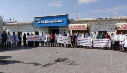وقفة احتجاجية لمتعاقدي مستشفى عتق للامومة والطفولة