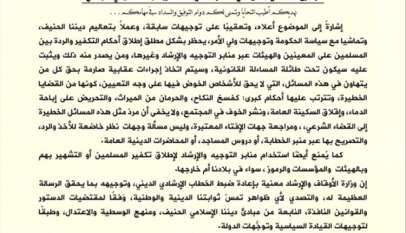 وزارة الأوقاف والإرشاد تصدر تعميما هاما