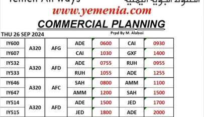 جدول لرحلات اليوم من وإلى مطار عدن الدولي