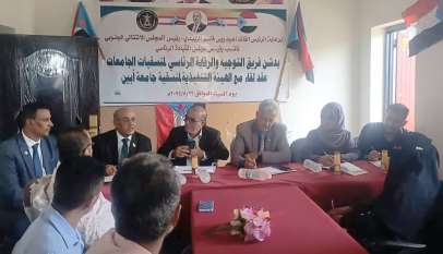 فريق التوجيه والرقابة الرئاسي يعقد لقاءً مع الهيئة التنفيذية لمنسقية المجلس الانتقالي بجامعة أبين