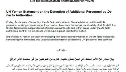 عاجل: الأمم المتحدة تعلق أنشطتها في مناطق سيطرة الحوثيين بسبب احتجاز موظفيها