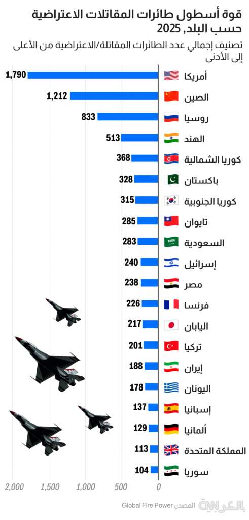 ترتيب مفاجئ للقوة الجوية للدول لعام 2025.. السعودية تتقدم على مصر