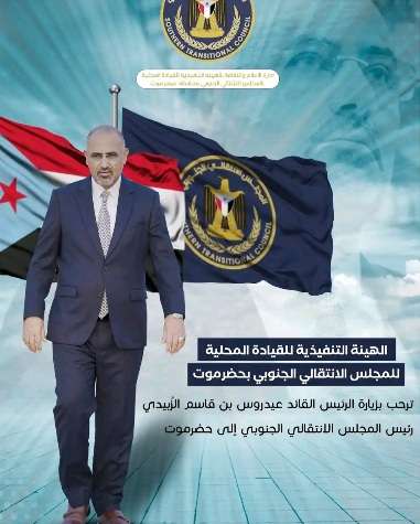 رحبت الهيئة التنفيذية للقيادة المحلية للمجلس الانتقالي الجنوبي في حضرموت بهذه الزيارة التاريخية، مؤكدةً أنها تمثل خطوة هامة نحو تعزيز دور المحافظة في مستقبل الجنوب، وترسيخ مبدأ تمكين أبنائها من إدارة شؤونهم السياسية والإدارية والاقتصادية بأنفسهم. وأشادت الهيئة بالتزام الرئيس الزُبيدي بالاستماع المباشر لمطالب أبناء حضرموت، والعمل على معالجتها ضمن رؤية شاملة تهدف إلى تحقيق الاستقرار والتنمية.