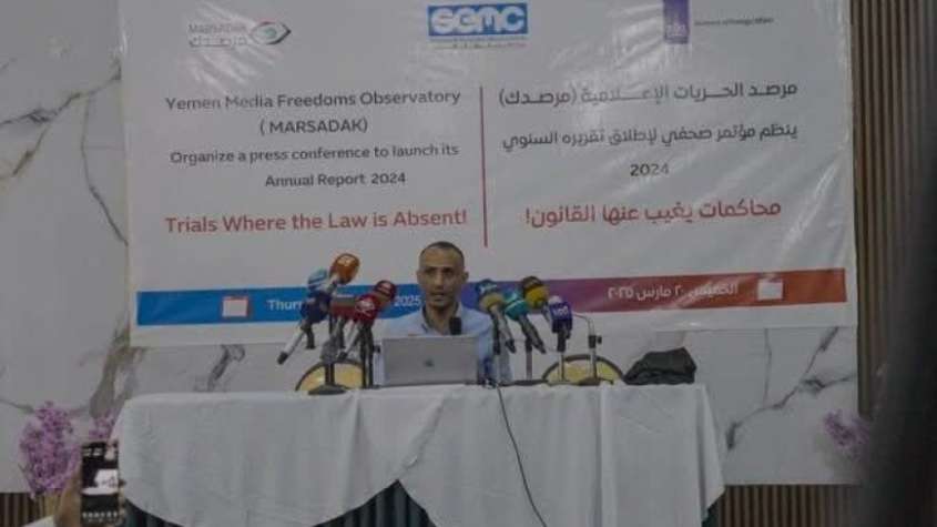 ووثق المرصد 98 انتهاكاً خلال عام 2024، شملت اعتقال الصحفيين، تهديدهم، وفرض أحكام بالإعدام دون سند قانوني، مشيرًا إلى أن واقع الحريات الإعلامية في اليمن يزداد سوءاً مع تصاعد الانتهاكات واستمرار الإفلات من العقاب، واحتجاز 6 صحفيين، 5 منهم في سجون المليشيا.