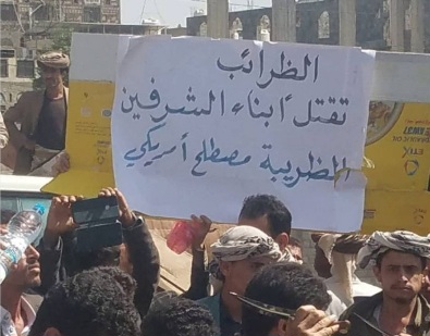 المتظاهرون رفعوا لافتات ساخرة من مثل “الضريبة مصطلح أمريكي”، في محاكاة تهكمية لخطاب المليشيات الحوثية الذي يدعو إلى مقاطعة المنتجات الأمريكية ومناهضة السياسات الغربية، في الوقت الذي تتوسع داخليًا في فرض الجبايات على المواطنين.
