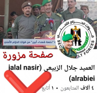 الحزام الأمني ينفي وجود صفحة رسمية للعميد الربيعي على منصة الفيس