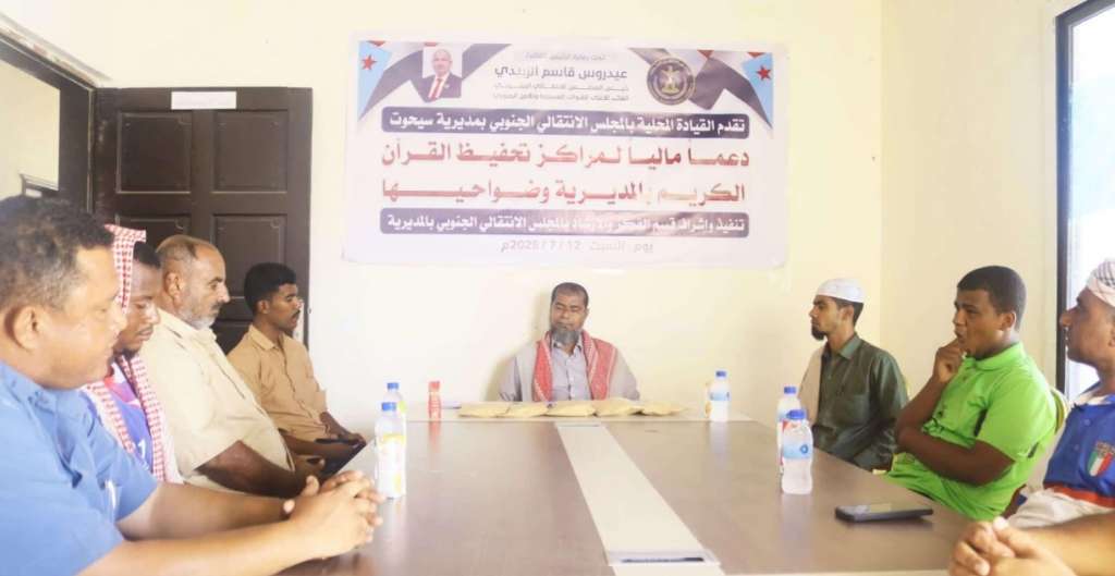 وأكد رئيس تنفيذية انتقالي سيحوت، علي جمعان عويّض، أن هذه الخطوة تأتي في إطار خطة المجلس الرامية إلى دعم البرامج التربوية والدينية الهادفة إلى بناء جيل واعٍ ومتمسك بالقيم الدينية والأخلاق الإسلامية، مشيداً بالدور الكبير الذي تقوم به إدارات المراكز والمعلمين في تحفيظ وتعليم القرآن الكريم للأطفال والشباب. وشمل الدعم عددًا من مراكز التحفيظ المنتشرة في مختلف مناطق المديرية، وُزّع وفقاً لحجم الاحتياج لكل مركز، في خطوة لاقت ارتياحاً واسعاً في أوساط المشرفين والعاملين في تلك المراكز، الذين عبّروا عن شكرهم وتقديرهم لهذه المبادرة التي تسهم في استمرار أنشطتهم وتحسين بيئة التعليم فيها