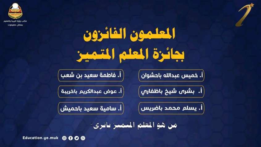 مدير تربية غيل باوزير يبارك لمن نالوا جائزة المعلم المتميز من معلمي ومعلمات تربية مديرية غيل باوزير