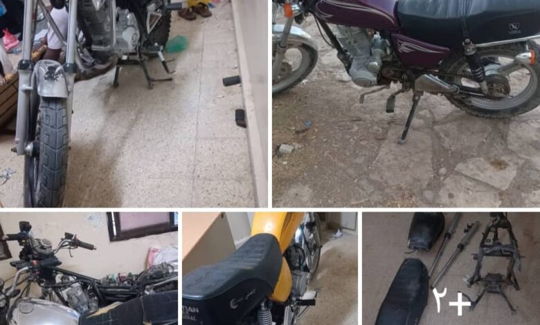 وأوضح مدير مركز شرطة باعبود، الملازم أول سعيد الحامدي، أن التحريات أسفرت عن رصد تحركات أفراد العصابة بمساندة وتعاون من المواطنين، وتم العثور على ورشة لتعديل ملامح الدراجات النارية أسفل منزل أحد المتهمين، حيث ضُبطت خمس دراجات مسروقة وعدد من الهياكل والمكائن وقطع الغيار،
