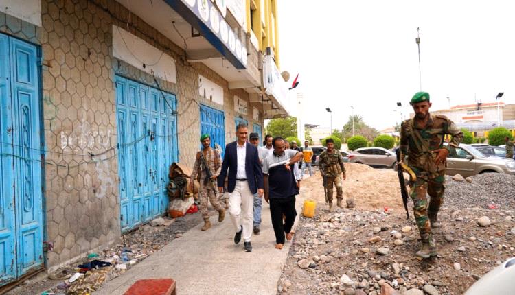 محافظ عدن يشدد على استكمال تصريف المياه ورفع المخلفات ومواصلة حملات الرش الضبابي