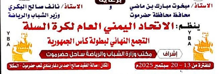 جاء ذلك بالتزامن مع انطلاق منافسات البطولة صباح اليوم، والتي تُقام تحت رعاية محافظ حضرموت ووزير الشباب والرياضة الأستاذ نايف صالح البكري، خلال الفترة من 13 إلى 20 سبتمبر الجاري، بالصالة المغلقة في نادي شعب حضرموت، حيث تمثل هذه البطولة ختام الموسم الرياضي 2024/2025.