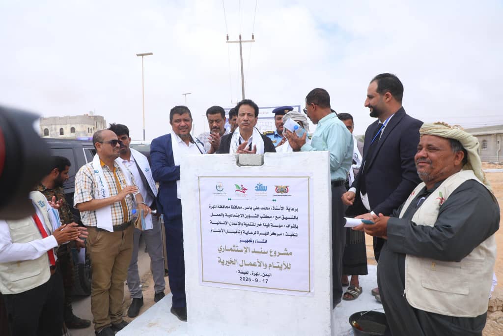 محافظ المهرة يضع حجر الأساس لمشروع “سند” الاستثماري لدعم الأيتام والعمل الخيري بمدينة الغيضة