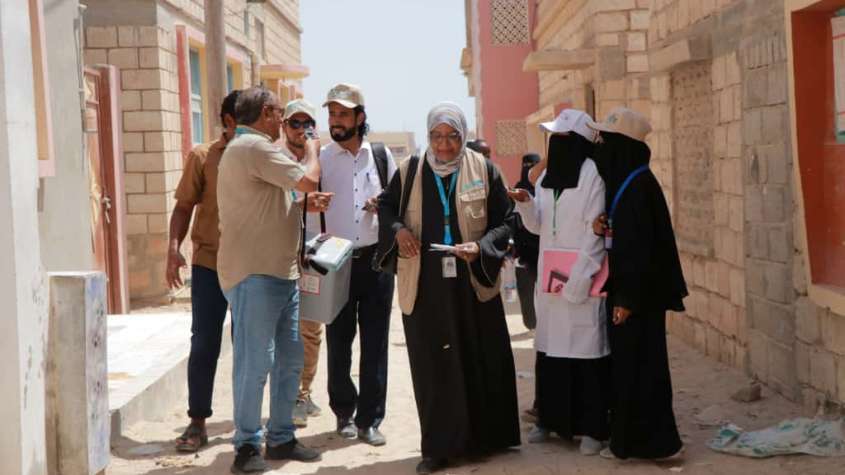 وفد من وزارة الصحة العامة والسكان ومنظمة اليونيسيف يطلعون على الفرق الميدانية ونتائج حملة التحصين ضد شلل الأطفال بمديرية الشحر