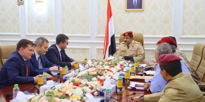 بحث وزير الدفاع، الفريق الركن محسن الداعري، الإثنين ، في العاصمة عدن، مع السفير الروسي لدى اليمن، يفغيني كودروف، مستجدات الأوضاع على الساحة اليمنية، وتعزيز التعاون الدفاعي المشترك.