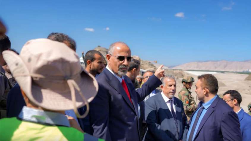 الرئيس الزُبيدي يطّلع على سير العمل في مشروع سد حسان بمحافظة أبين