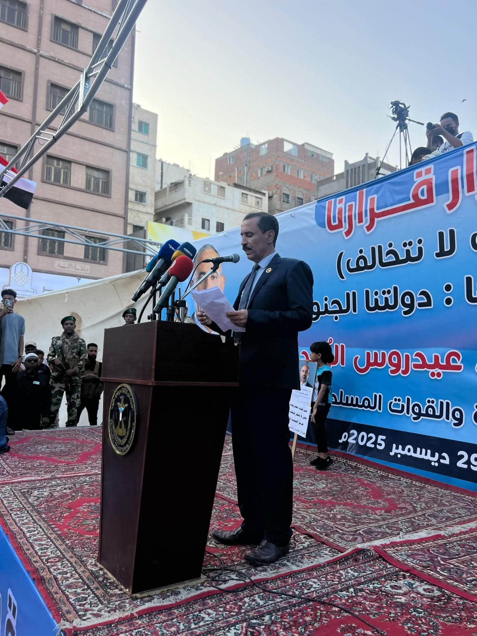 يا جماهير شعبنا العظيم، أن حضوركم اليوم استفتاء واضح لا يقبل التأويل، إنها رسالة تقول نحن شعب الجنوب العربي، أصحاب الأرض والحق، وماضون نحو تحقيق هدفنا دون تردد.