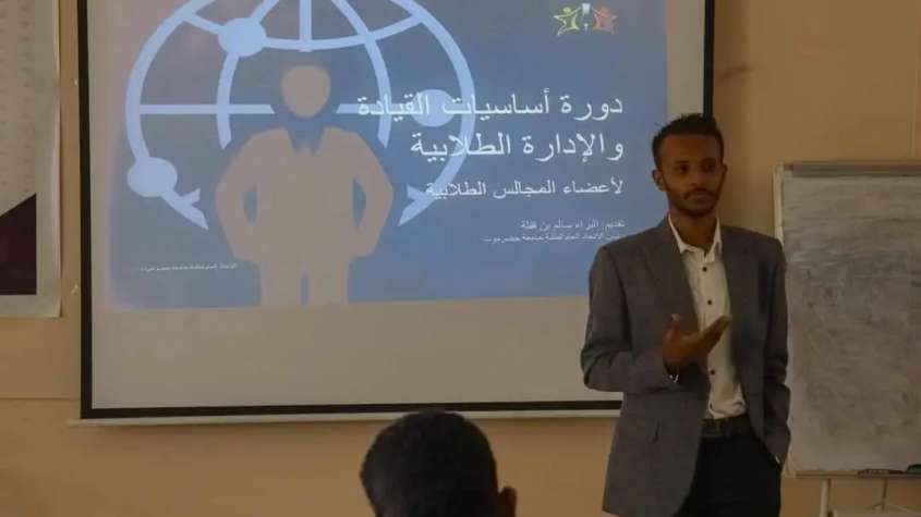 نظّم المجلس الطلابي بكلية العلوم بجامعة حضرموت، في قاعة الدراسات العليا، دورة تدريبية بعنوان “أساسيات القيادة والإدارة الطلابية” قدمها رئيس الاتحاد العام لطلبة جامعة حضرموت البراء سالم بن قفلة، برعاية من عمادة الكلية وبتمويل منسقيّة انتقالي جامعة حضرموت، استهدفت أعضاء المجالس الطلابية بكليتي العلوم والتربية.
