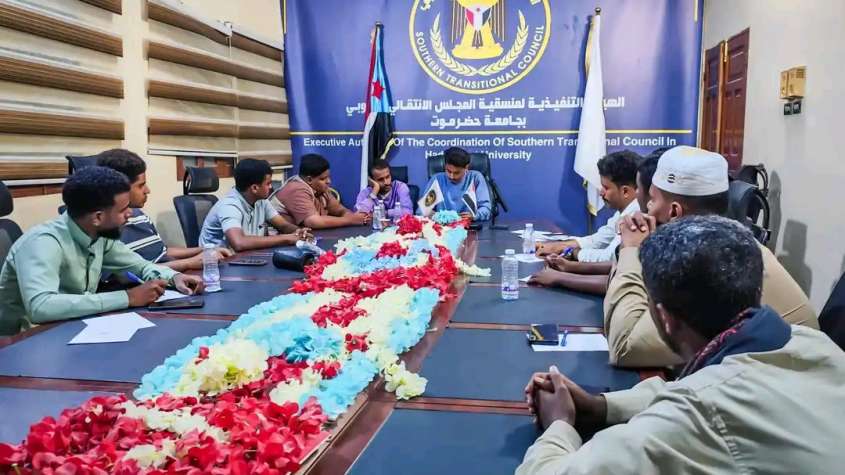 عقد فريق العمل السياسي بالهيئة التنفيذية لمنسقية المجلس الانتقالي الجنوبي بجامعة حضرموت، الخميس، اجتماعًا لمناقشة أداء عمل المسؤولين السياسيين في منسقيات الجامعة.