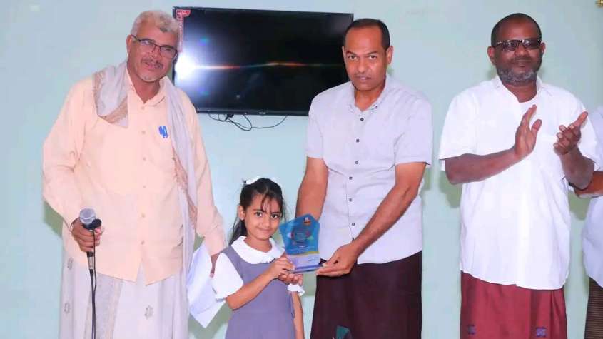 مدير تربية غيل باوزير أ.عبدالعزيز عمشوش يكرم الفائزين في مسابقةالطابور الصباحي لرياض الأطفال