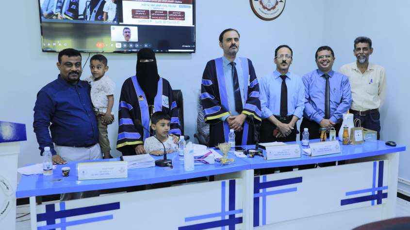 وتكونت لجنة المناقشة من نخبة من الأكاديميين ضمت رئيس اللجنة والمشرف العلمي للباحثة من جامعة حضرموت الأستاذ الدكتور محسن محمد بن كليب و عضو اللجنة ومناقش داخلي الأستاذ الدكتور هاني سالمين بلعفير، إضافة الى مناقش خارجي من جامعة عدن الأستاذ المشارك الدكتور رنا سالم صالح عضو اللجنة .