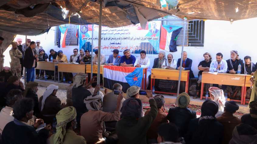فريق التواصل بالمجلس الانتقالي يعقد لقاءً موسعًا مع قيادة المجلس والسلطة المحلية ووجهاء مديرية الطلح