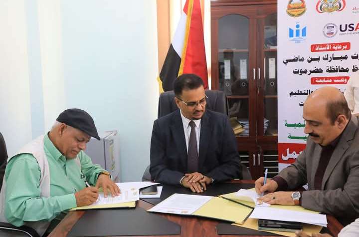 الأمين العام لمحلي حضرموت يرعى توقيع إتفاقية تنفيذ عدداً من المشاريع في القطاع التربوي
