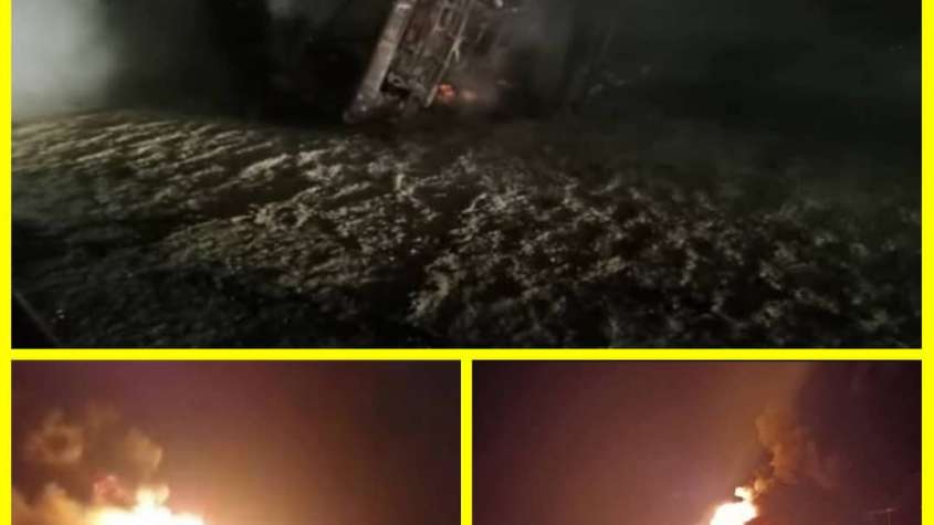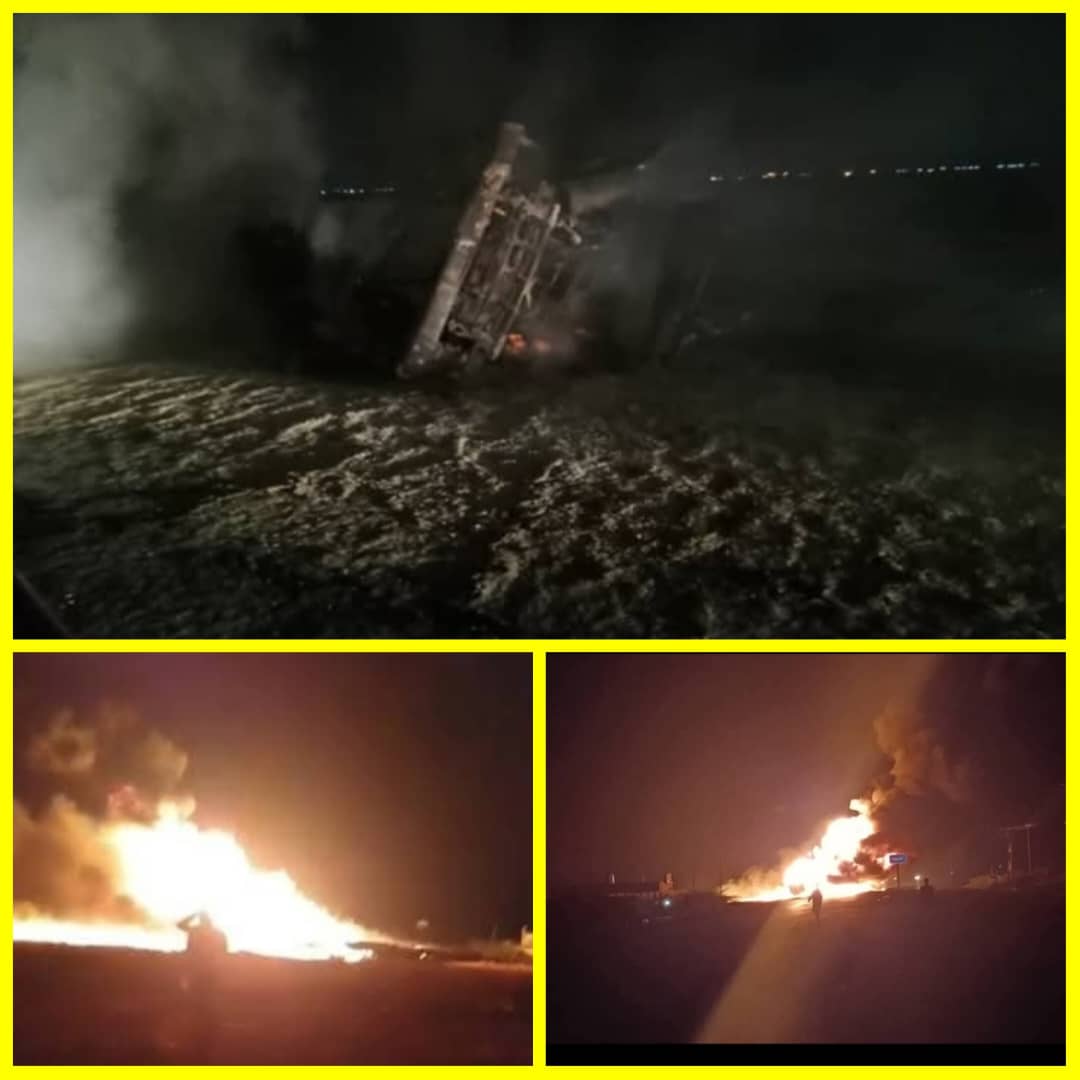 وأفاد مصدر محلي لموقع الوسطى أونلاين أن الحادث وقع نتيجة انفجار مفاجئ في أحد إطارات القاطرة من نوع “فولفو”، مما أدى إلى انقلابها واشتعال خزان الوقود وانفجار الشحنة المحملة.