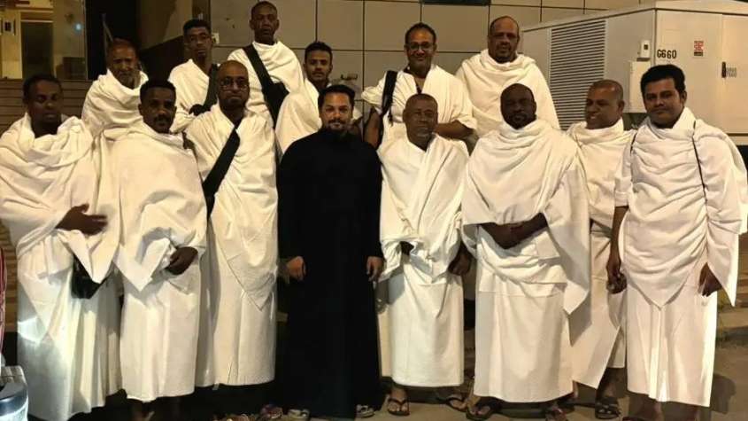 فرقة البندر الحضرمية يؤدون العمرة بدعوة من رجل بر