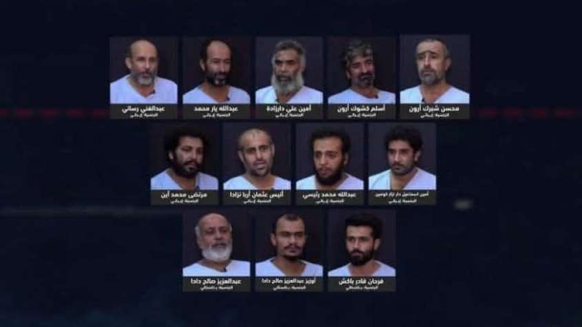 وأورد البيان أسماء الأشخاص وفق الجوازات ورخص البحرية التي يحملونها وهم “عبدالغني عبدالله رساني، عبدالله بار محمد، اسلم كشوك أرون، محسن شيرك أرون، مرتضى محمد آين، أنيس عثمان أربا تزادا، عبدالله محمد رئيسي، أمين إسماعيل نزار كوهين” من إيران، بالإضافة إلى عبدالله صالح دادا، أوزيز عبدالعزيز صالح دادا، فرحان قادر باكش من باكستان.