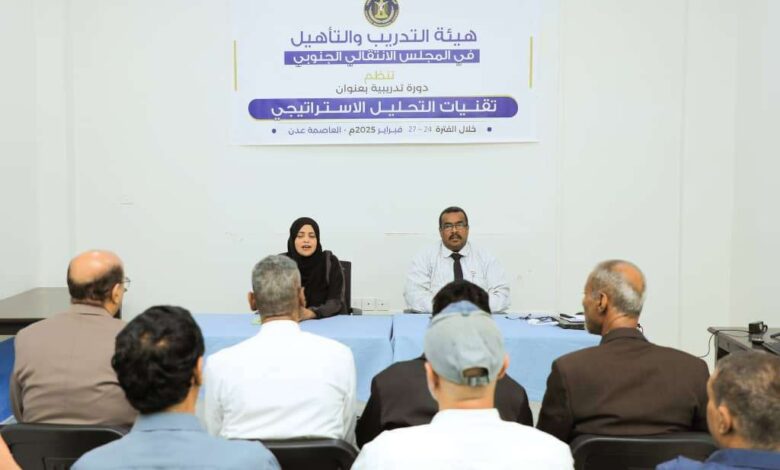 دشنت هيئة التدريب والتأهيل المساعدة لهيئة رئاسة المجلس الانتقالي الجنوبي، اليوم الاثنين في العاصمة عدن، دورة تدريبية حول التخطيط الاستراتيجي، استهدفت عدداً من أعضاء مجلس المستشارين.